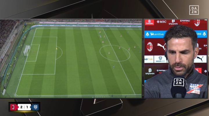 在比赛的下半场,AC米兰似乎更多地控制了比赛节奏,对此,法布雷加斯表示:“在来到圣西罗的比赛中,我们预料到会遇到米兰增大进攻力度的情况。赛季中不幸的局面似乎一直伴随着我们,三次在90分钟被判点球,一次进球被取消。我认为今天我们的第二个进球并非越位,但裁判却看到了相反的情况。这赛季对我们来说碰到了不少倒霉事,但我会保持积极态度,继续向前看。”